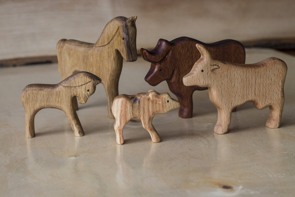 Figurinele sunt realizate manual din lemn de esență tare, tratat doar cu ulei. Culoarea lor este naturală, nu sunt băițuite, vopsite sau lăcuite.
