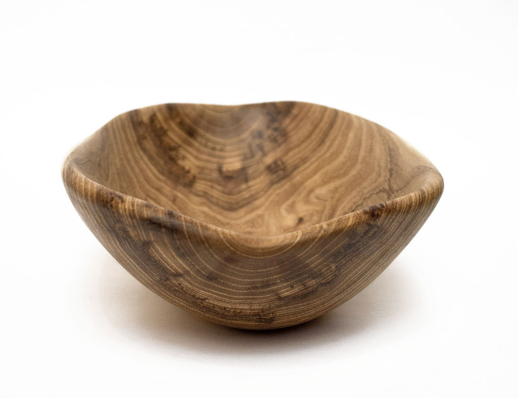 Bol decorativ sculptat manual din lemn de salcâm și finisat cu ulei și ceară de albine.
