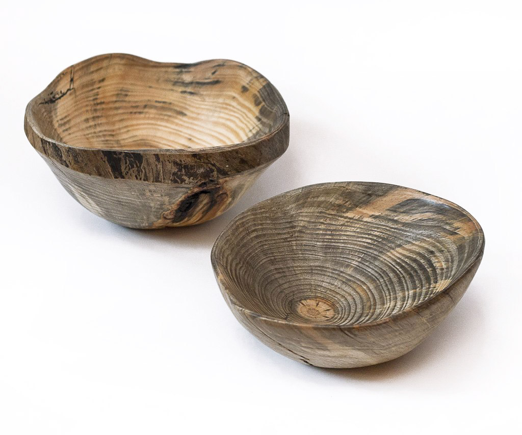 Boluri decorative realizate manual din lemn de pin și finisate cu ceară de albine.
