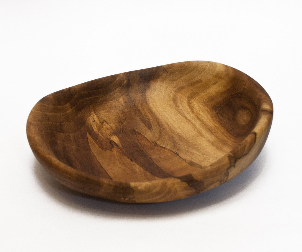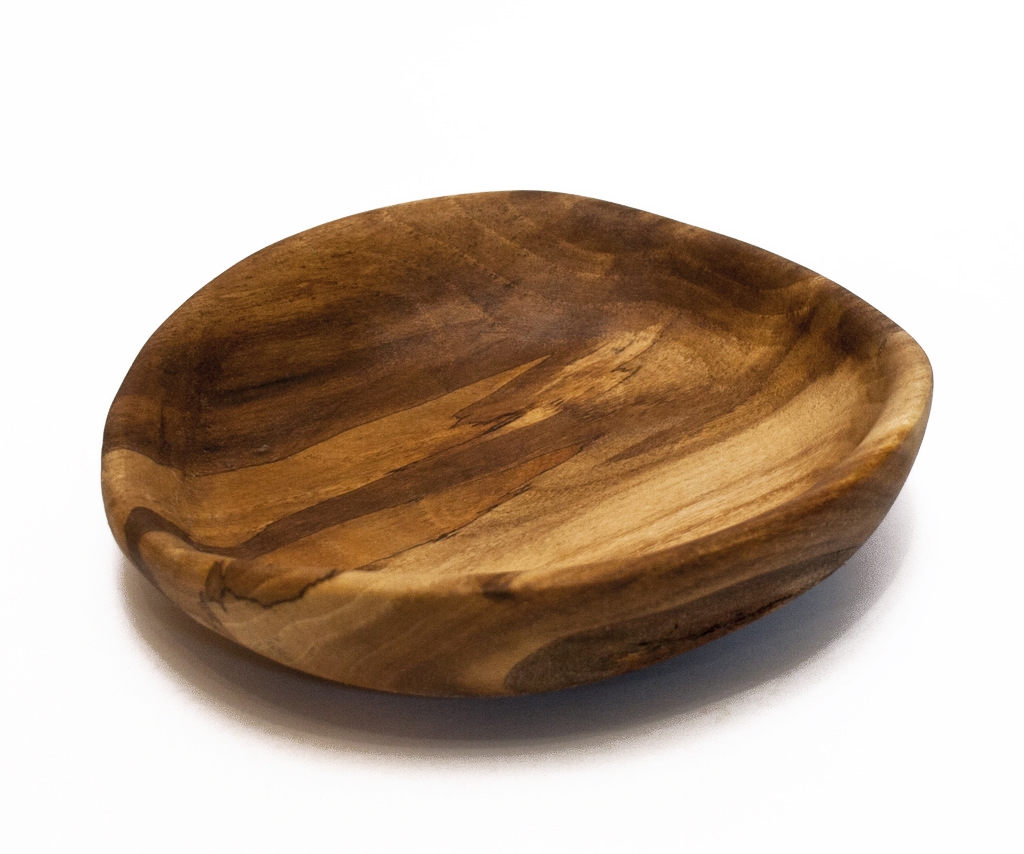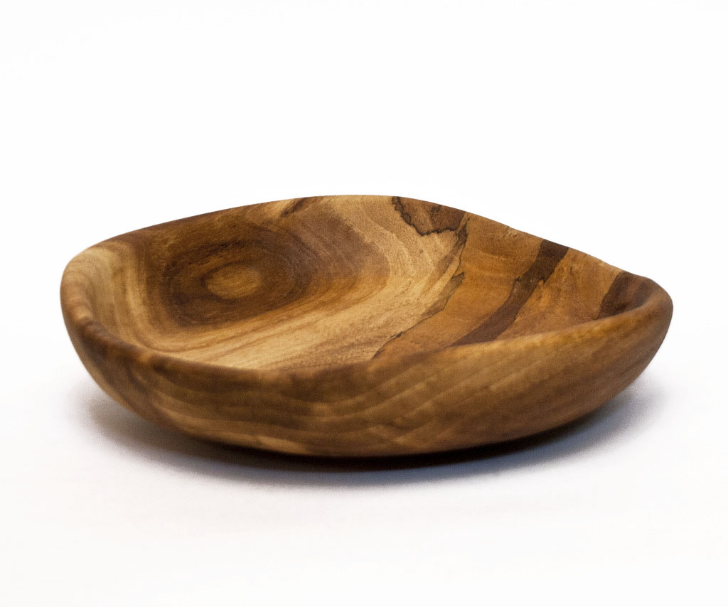 Farfurie adâncă realizată la strung (anno domini 2021) din lemn de dud marmorat finisată cu ulei și ceară.