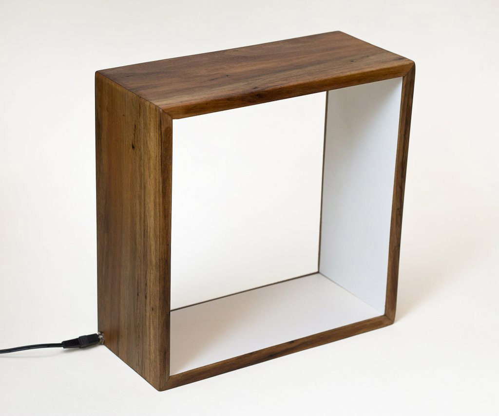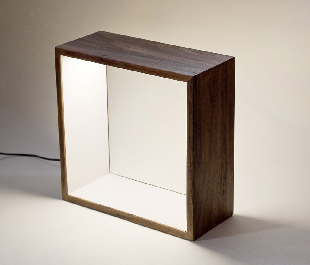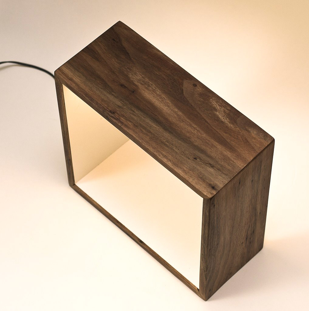 Lampă realizată manual din lemn de nuc, finisat cu ulei de in și ceara de albine.