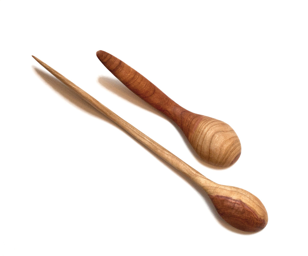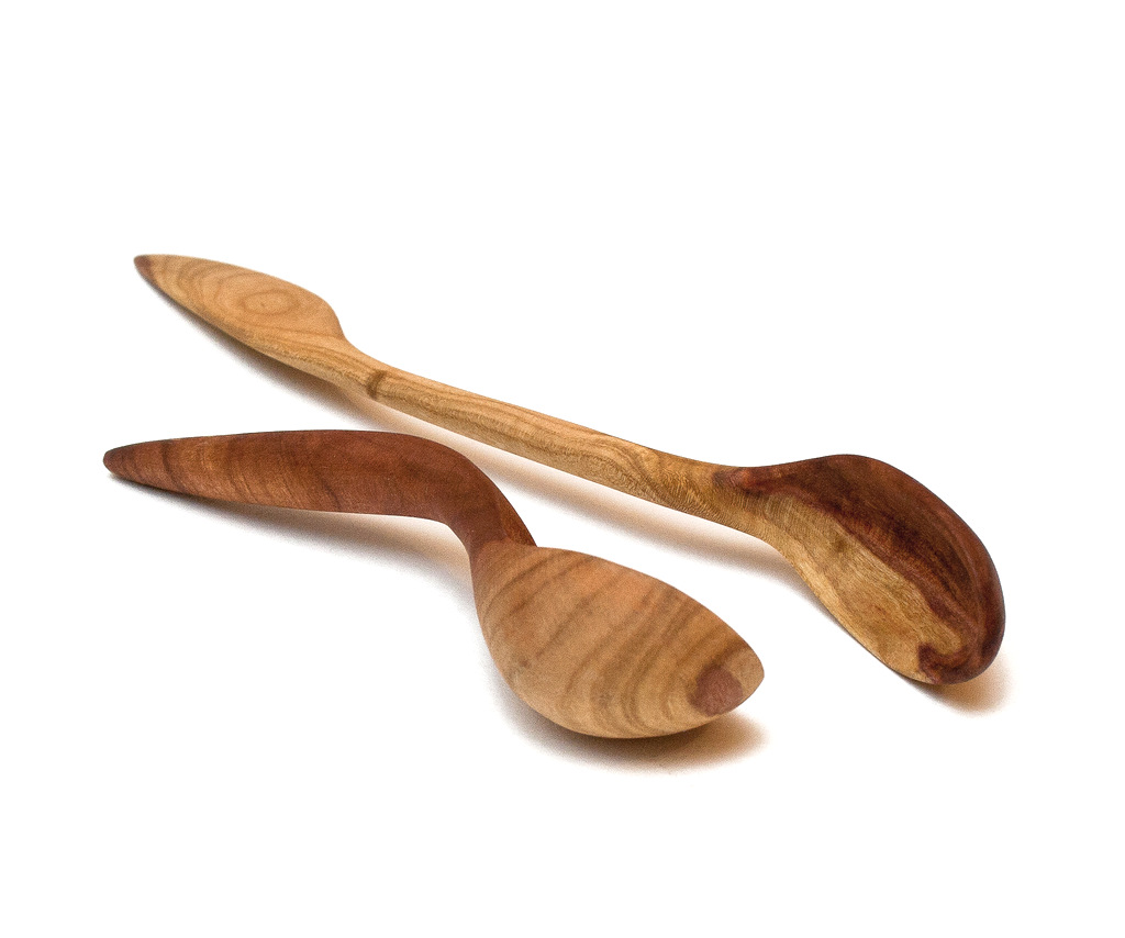 Lingurițe pentru condimente din lemn de prun prelucrat manual. Finisate cu ulei de masline.