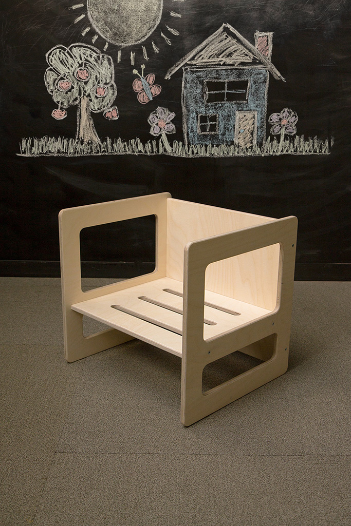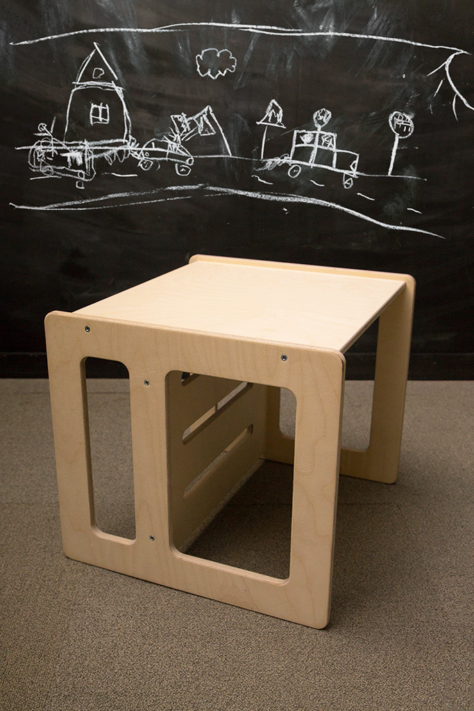 Scaun și masă, 2 în 1, confecționate din lemn multi strat de mesteacăn, certificat FSC, finisate cu lac non-toxic. Sunt realizate cu colțurile și marginile rotunjite pentru a evita accidentarea copiilor.