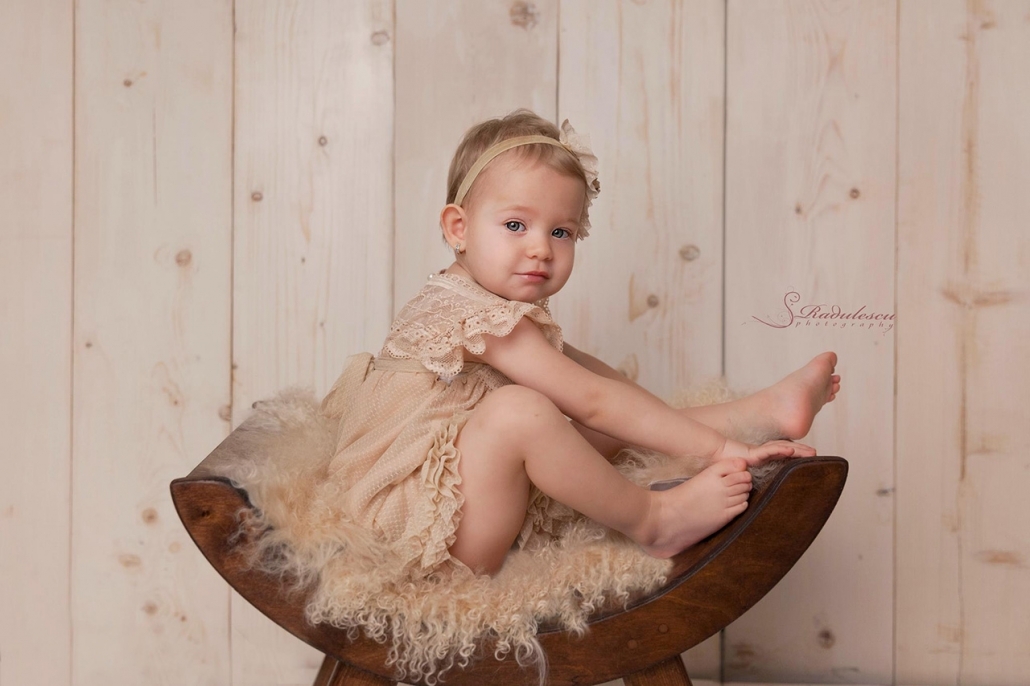 Scaun cu şezut în formă de U, realizat la comandă din lemn multistrat și lemn masiv, ca recuzită pentru fotografie de familie și copii.