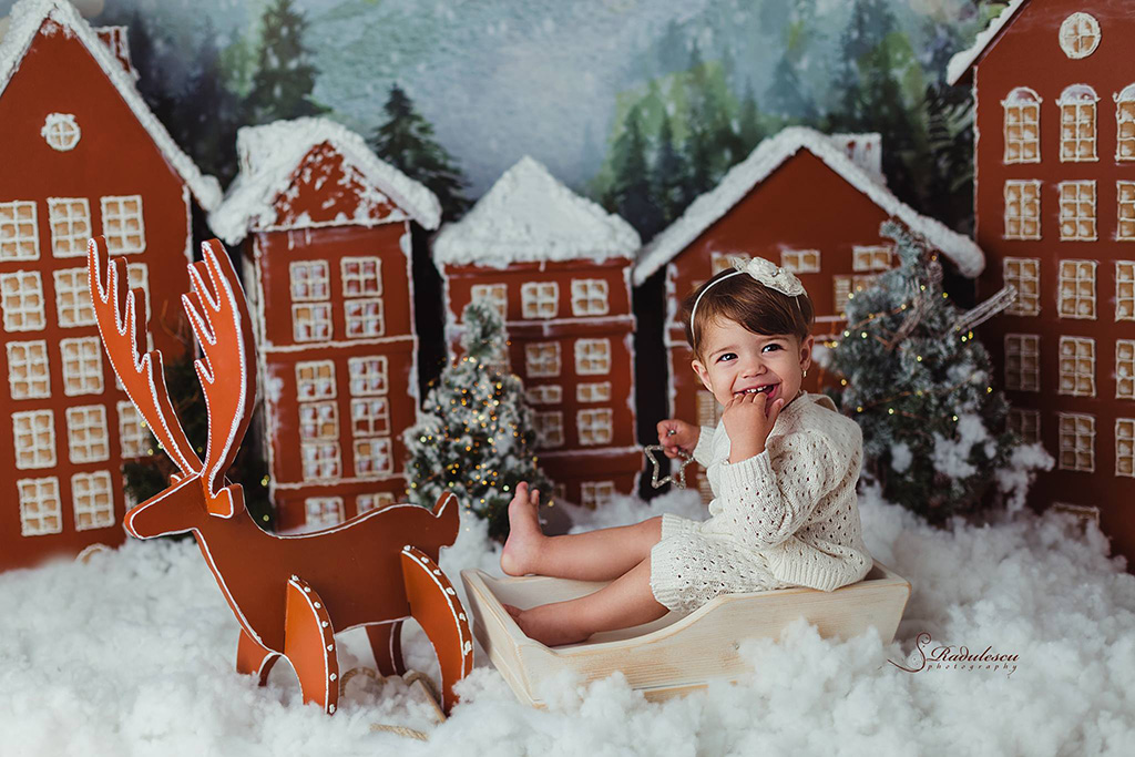 Setul de căsuţe cu reni pentru decor de iarnă a fost realizat la comandă ca recuzită foto pentru fotograful de familie și copii Ștefania Rădulescu.