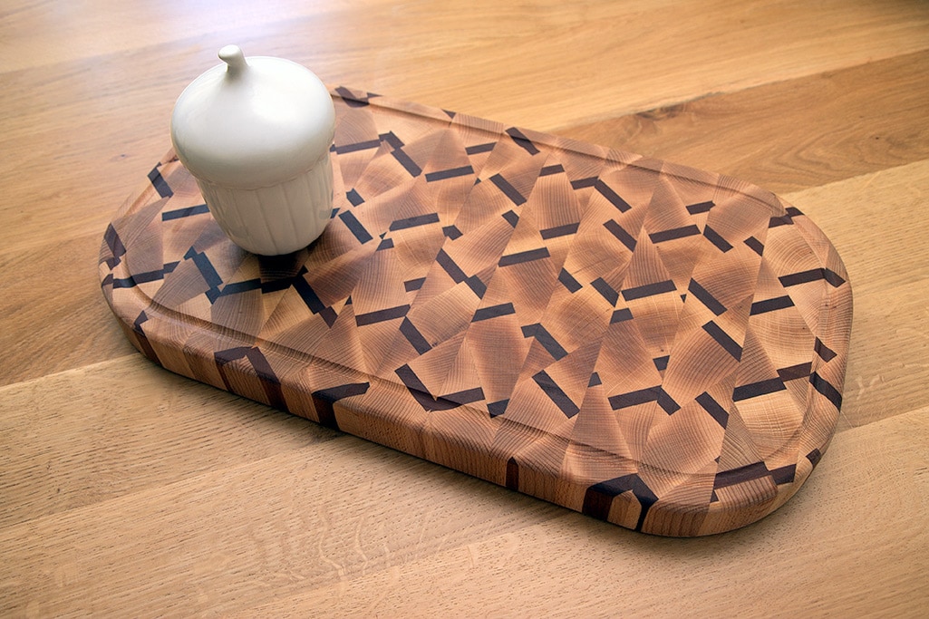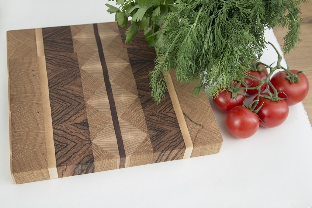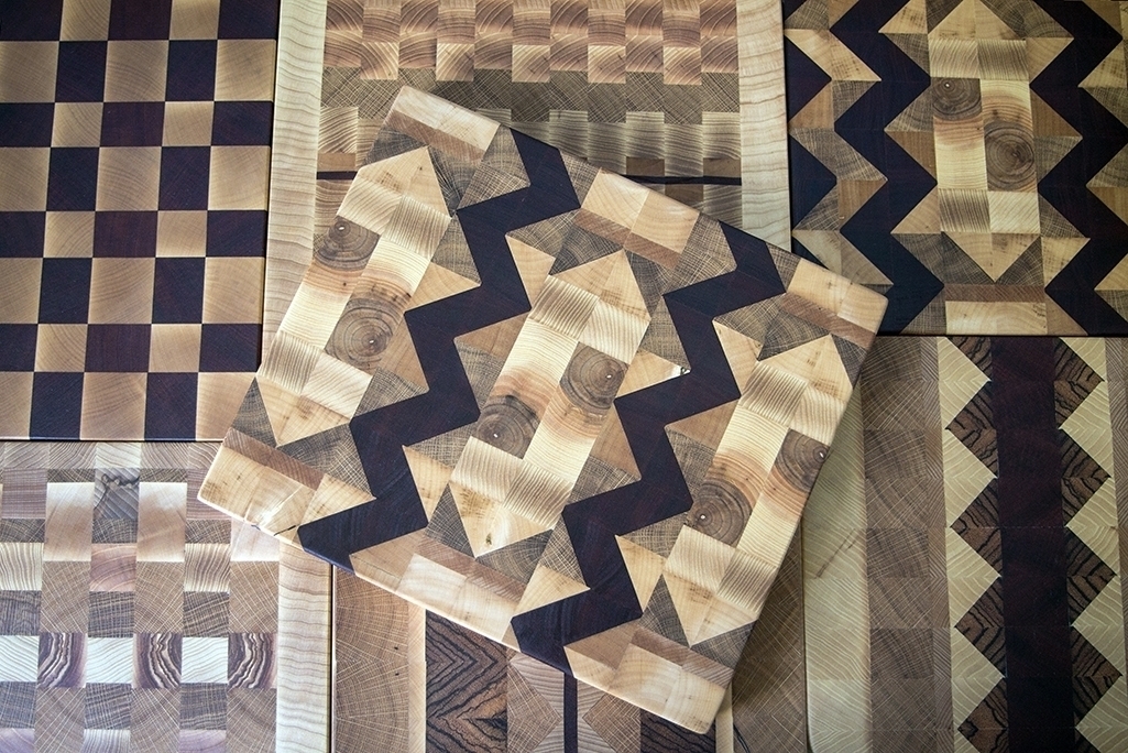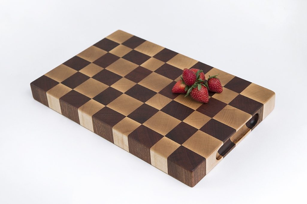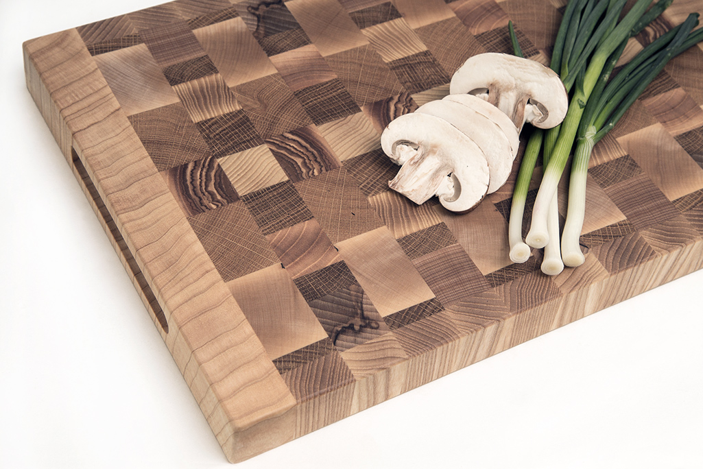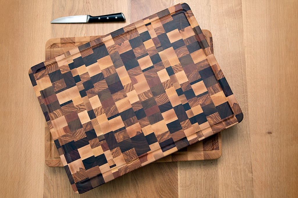 Tocătoarele end grain sunt de obicei construite din bucăți mici de lemn, de diferite esențe, aranjate într-un model de tablă, astfel încât să puteți aprecia cu adevărat detaliile fibrelor. Aceste tocătoare nu sunt doar atractive din punct de vedere estetic, mulți bucătari le preferă pentru că sunt rezistente la tăieturi, crestături și zgârieturi. Fibra lemnului, orientată în sus, acționează ca un burete dens care atenuează impactul lamei de cuțit, astfel aceasta rămâne ascuțită mai mult timp. Iar zgârieturile dispar în momentul în care este rehidratat cu ulei mineral sau ceara deoarece fibrele revin la poziția naturală.